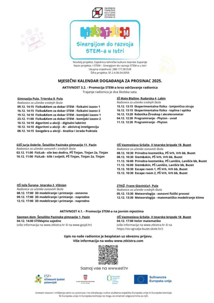 STEMajmo zajedno – 04.12.2025. od 14 sati (Spomen dom Pazin, Šetalište pazinske