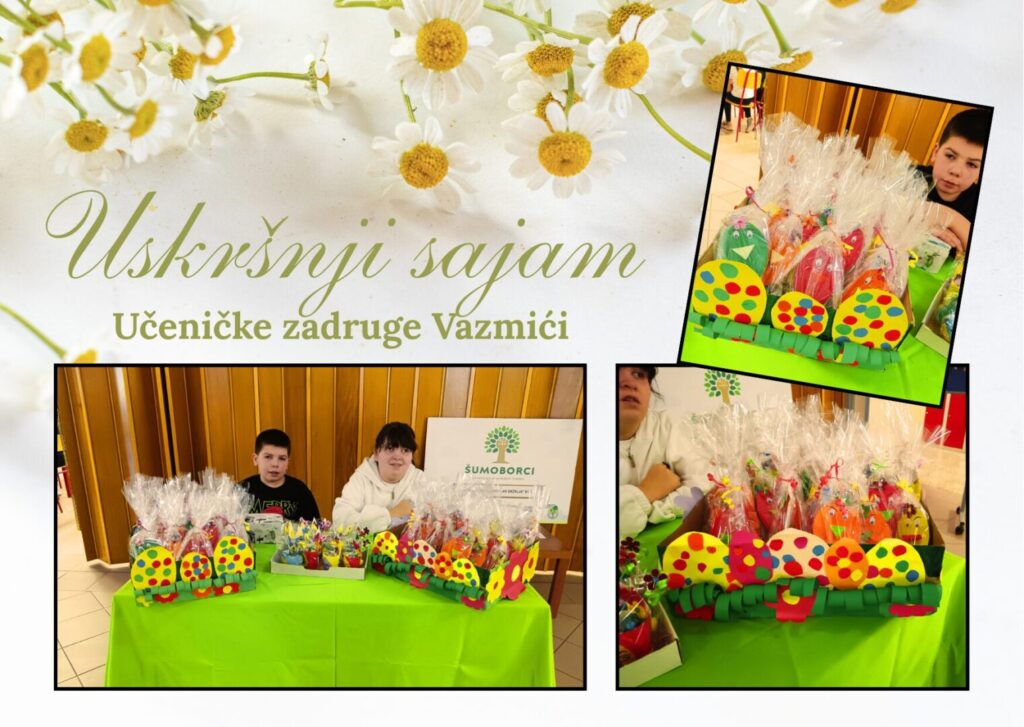 Proljeće nam je polako pokucalo na vrata, a s njim stiže i najšarenije doba godine. Od 23. do 25. ožujka 2026. naša Učenička zadruga Vazmići organizirala je Uskršnji sajam. Marljivi članovi sekcije Kreativni poseban razredni odjel pripremili su proizvode koji će uljepšati naše domove i razveseliti najdraže.